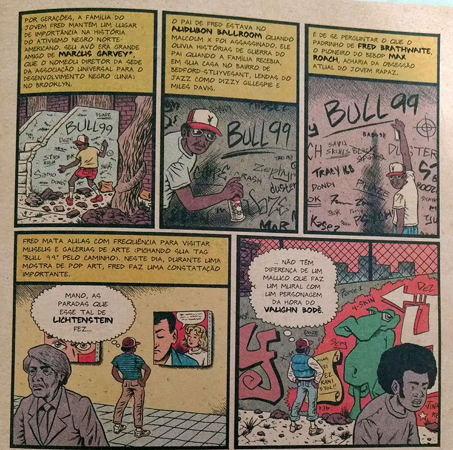 Ao longo de 128 páginas somos levados em um túnel do tempo, tanto no traço do autor, que remete às histórias de heróis dos gibis dos anos 1980 e desenha tudo de maneira “arcaica” no lápis e papel mesmo, sem usar meios digitais no processo, quanto nos personagens e histórias daquela época fundamental para a cultura pop atual. Há quarenta anos ninguém imaginaria que uma cultura surgida em meio a uma população marginalizada e excluída da sociedade dominaria o mundo.