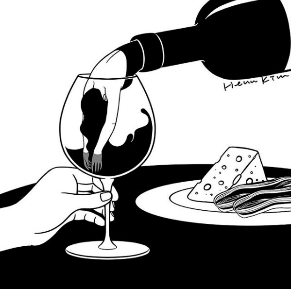 Henn Kim é uma artista coreana conhecida por suas ilustrações surreais. Reflexo de sua depressão e insônia na adolescência a artista passou quase dois anos sem falar encontrando na arte uma forma de se expressar.