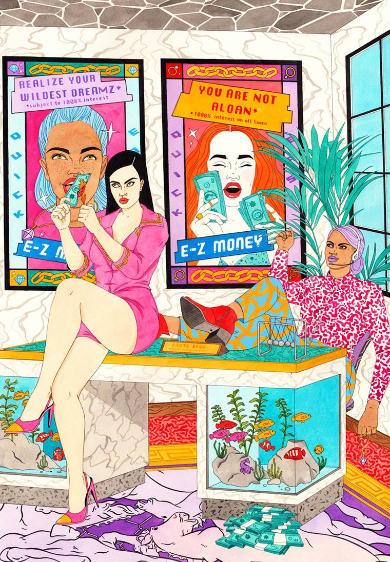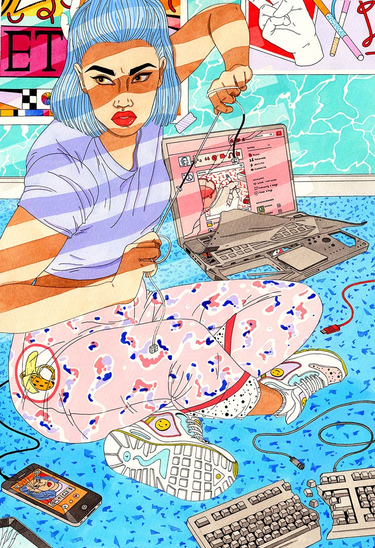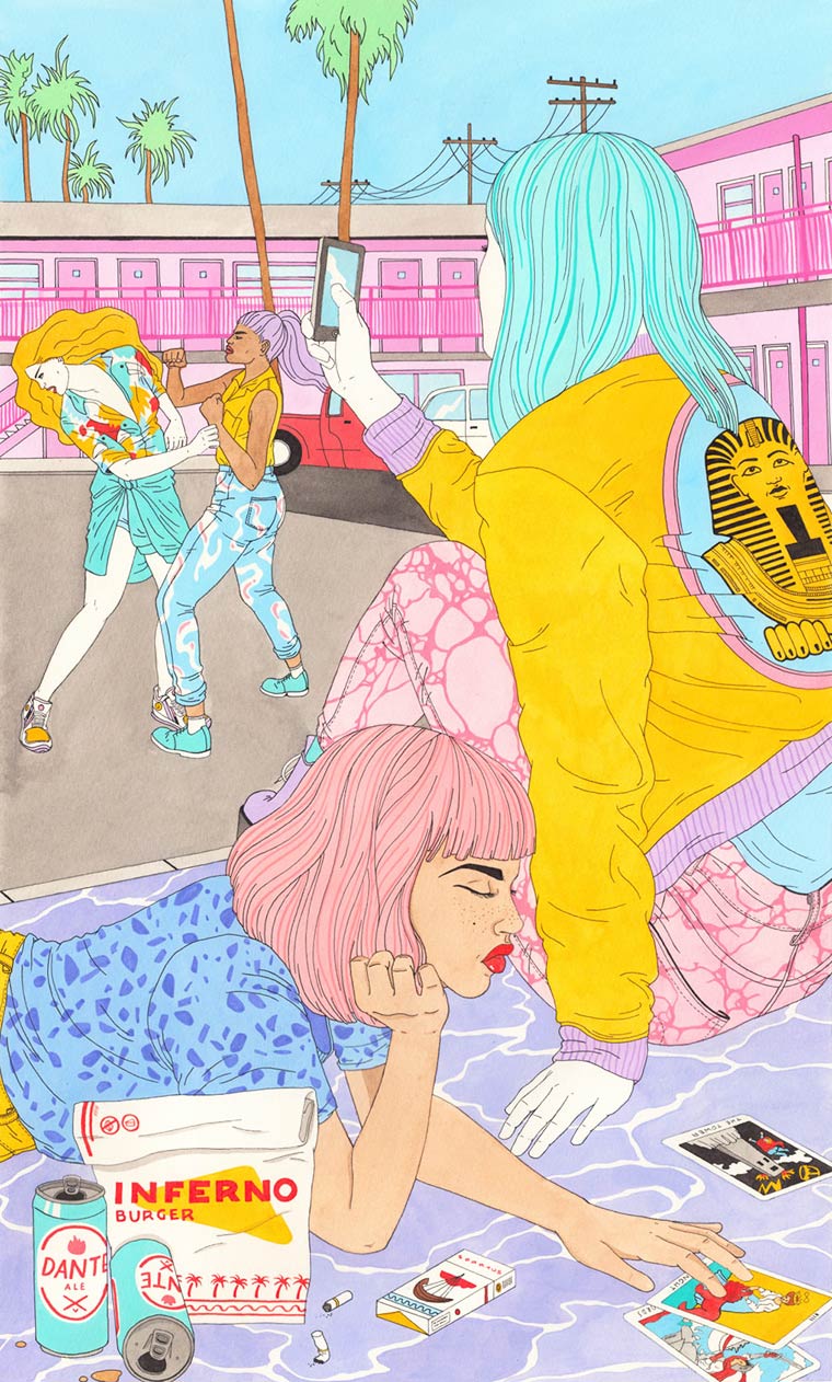 Laura Callaghan é uma ilustradora irlandesa, os seus desenhos são feitos com nanquim e aquarela. Uma das características do seu trabalho é o questionamento das redes sociais e a geração do Instagram, as suas personagens estão sempre em cenários e situações que fazem alusão a nossa cultura de exposição. Para a artista essa é uma faca de dois gumes, já que a mesma utiliza as redes sociais para divulgar os seu trabalho, mas mesmo assim ela não deixa a crítica de lado.